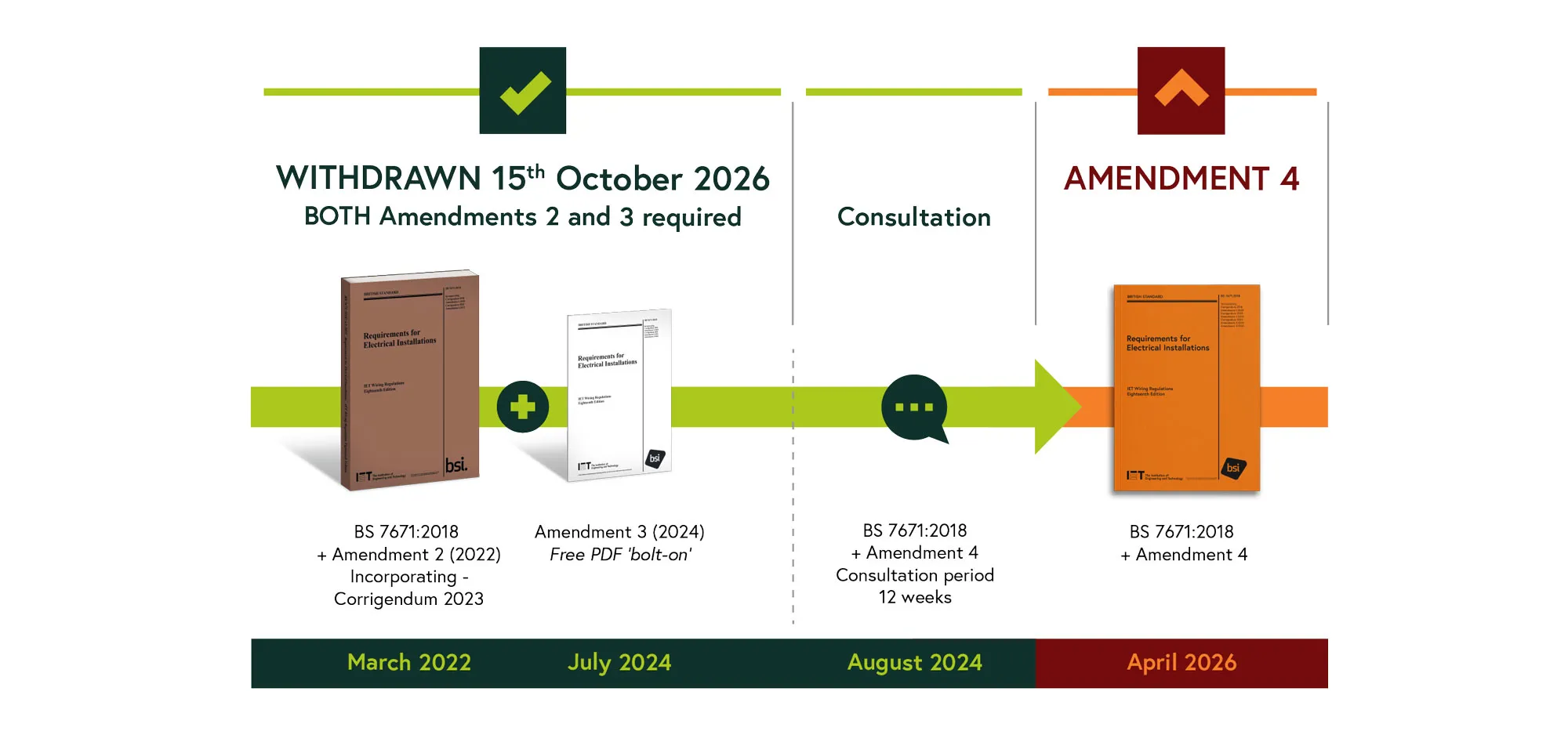 To keep you and your customers safe and to keep on top of recent changes, make sure you have the very latest “Orange Book” edition of the IET Wiring Regulations – BS 7671:2018 Amendment 4:2026.